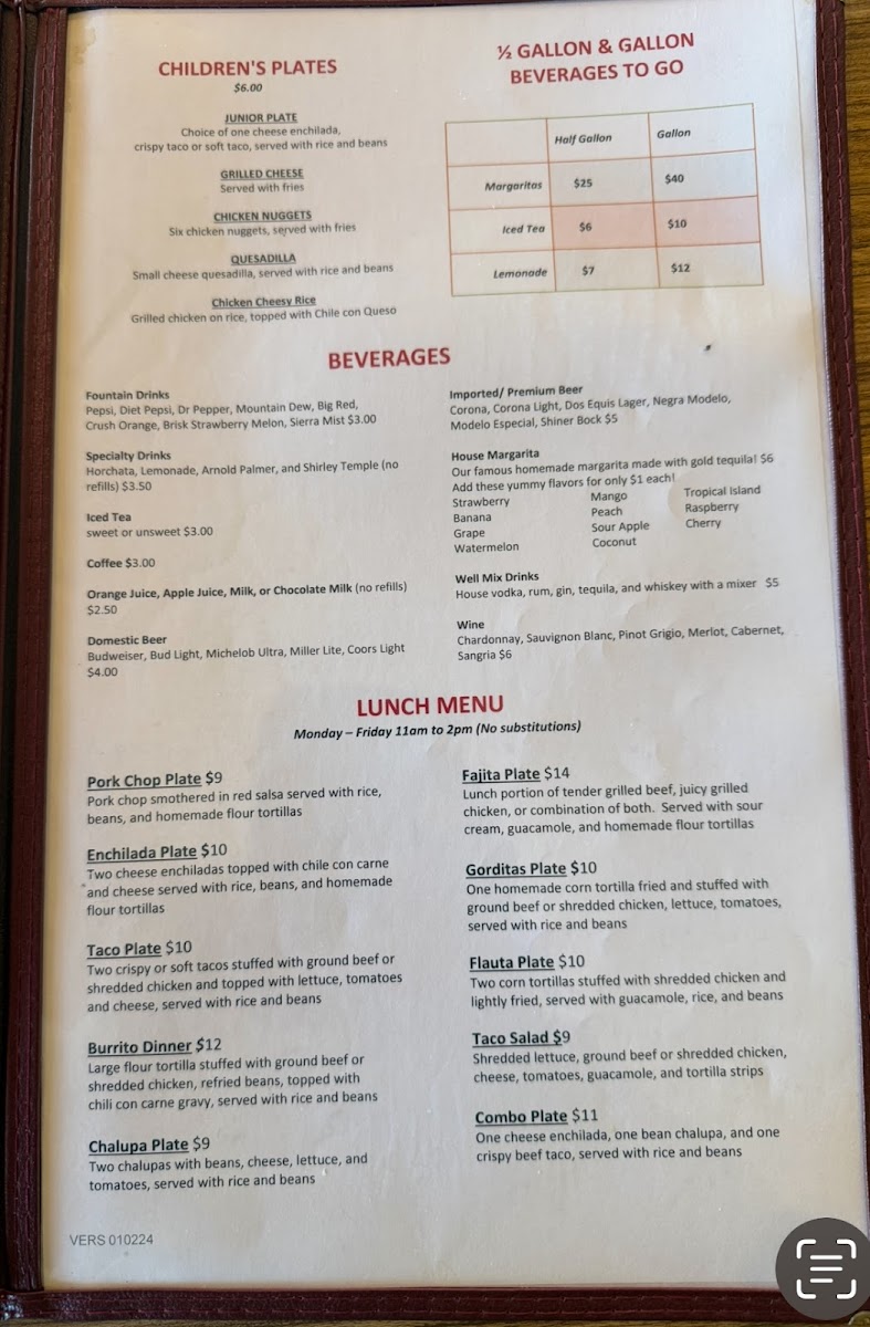Mexican Lemonade, Arnold Palmer, and Shirley Temple (no refills)