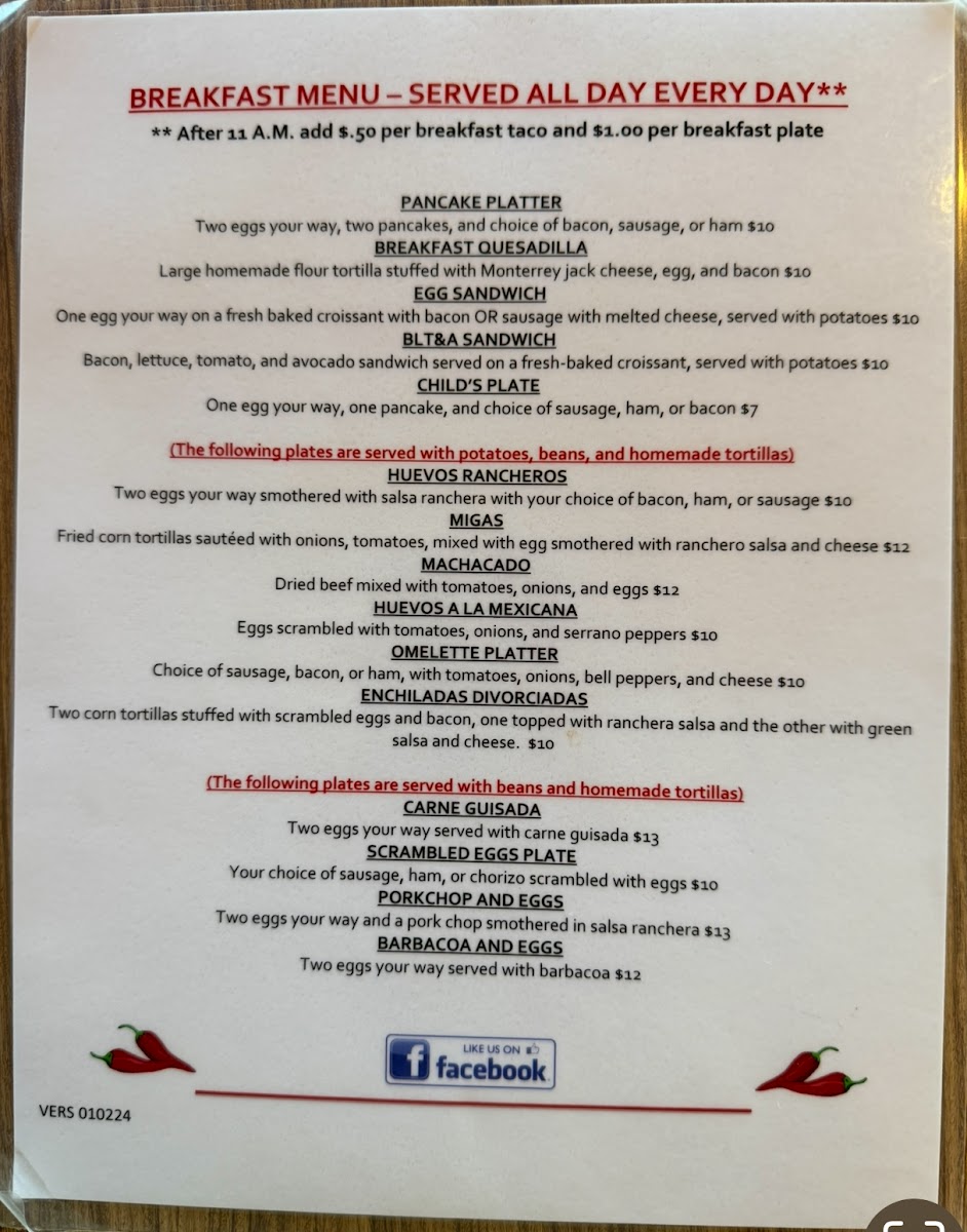 Fried corn tortillas sautéed with onions, tomatos, mixed with egg smothered with ranchero salsa and cheese